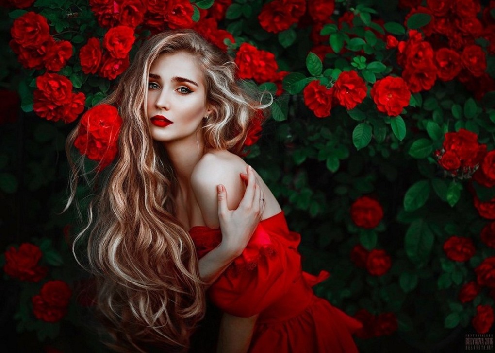 Девушка с красными розами