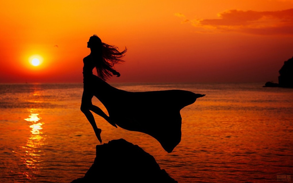 Женский силуэт на закате