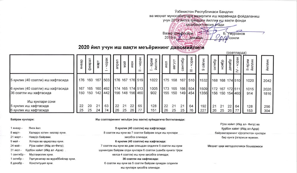 2021 Йил учун ишлаб чикариш таквими
